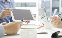 TV会議で香港やミャンマー現地スタッフと課題について話し合います。