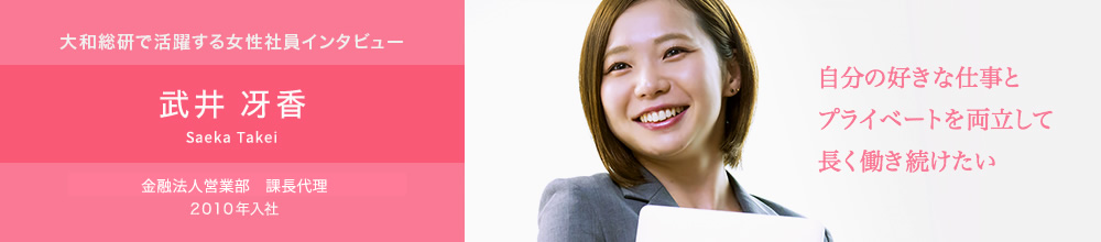 実は、産前休暇に入る直前まで働いていて、育児休職は1年未満で職場復帰しました。もちろんもっと長く休職する社員が多いのですが、仕事が好きだし、子どもの教育のことも考えての判断です。それに加えて、会社で女性の活躍を推進する流れがあることも理由のひとつ。これからは仕事と育児を両立しながら、キャリアアップを目指してさらなる価値を発揮していきたい、後輩ママたちのためにより良い組織作りをしていきたい、そんな想いを会社が後押ししてくれているのです。